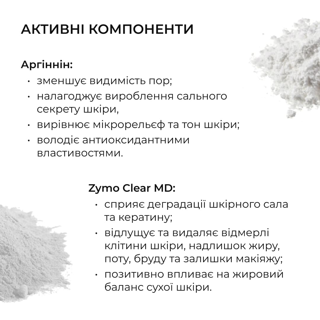 Ензимна пудра для ефективного очищення та вирівнювання рельєфу шкіри. Містить 2 типи ензимів рослинного походження - PROTEASE та LIPASE. Вони розчиняють надлишкові ліпіди, які продукують сальні залози, та ороговілі клітини, не зачіпаючи при цьому здоровий шар епідермісу.