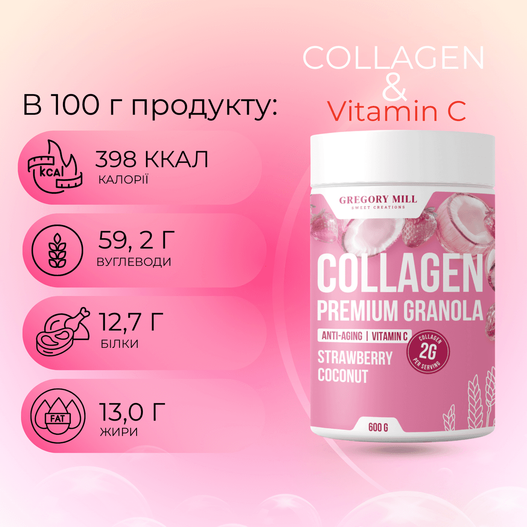 Більше не потрібно обирати між смачною й корисною їжею. Гранола Gregory Mill з колагеном — функціональна їжа нового покоління, яка поєднує в собі смак та користь, а головне — працює на красу зсередини та дає помітний результат.