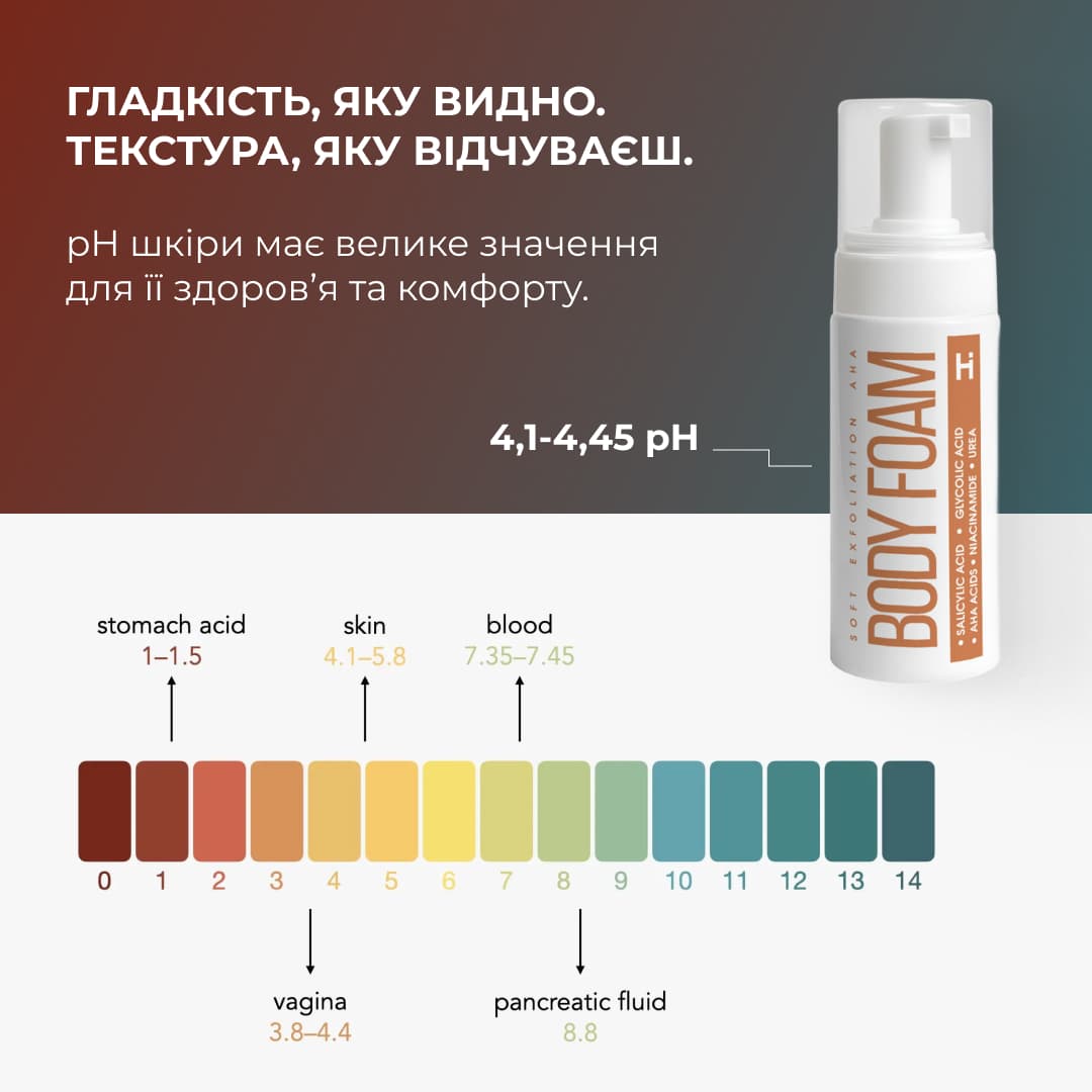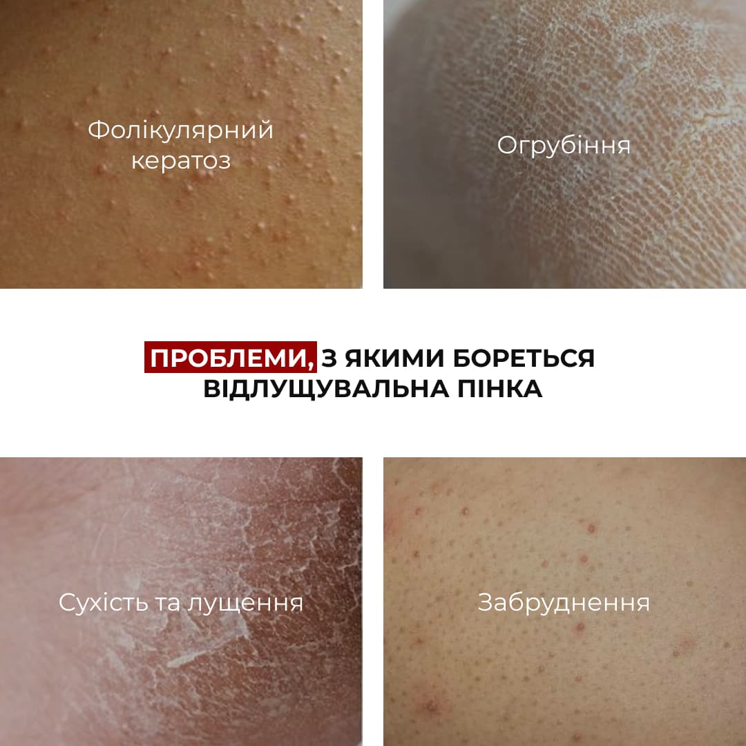 Функціональна пінка для тіла базується на принципі контрольованої кератолітичної дії (здатність речовин розм’якшувати, відлущувати та видаляти ороговілий шар шкіри), поєднуючи делікатне очищення з кислотним оновленням. Формула розроблена для корекції огрубіння, фолікулярного кератозу та нерівного мікрорельєфу, що робить її незамінним етапом у сучасному догляді за тілом.