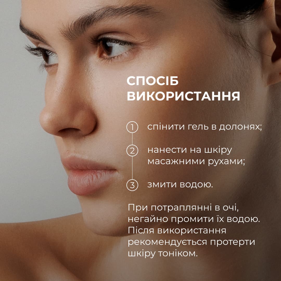 Зволожуючий гель для вмивання з вітаміном С. Спінити гель в долонях і нанести на шкіру масажними рухами. Змити великою кількістю води. При потраплянні в очі, негайно промити їх водою.