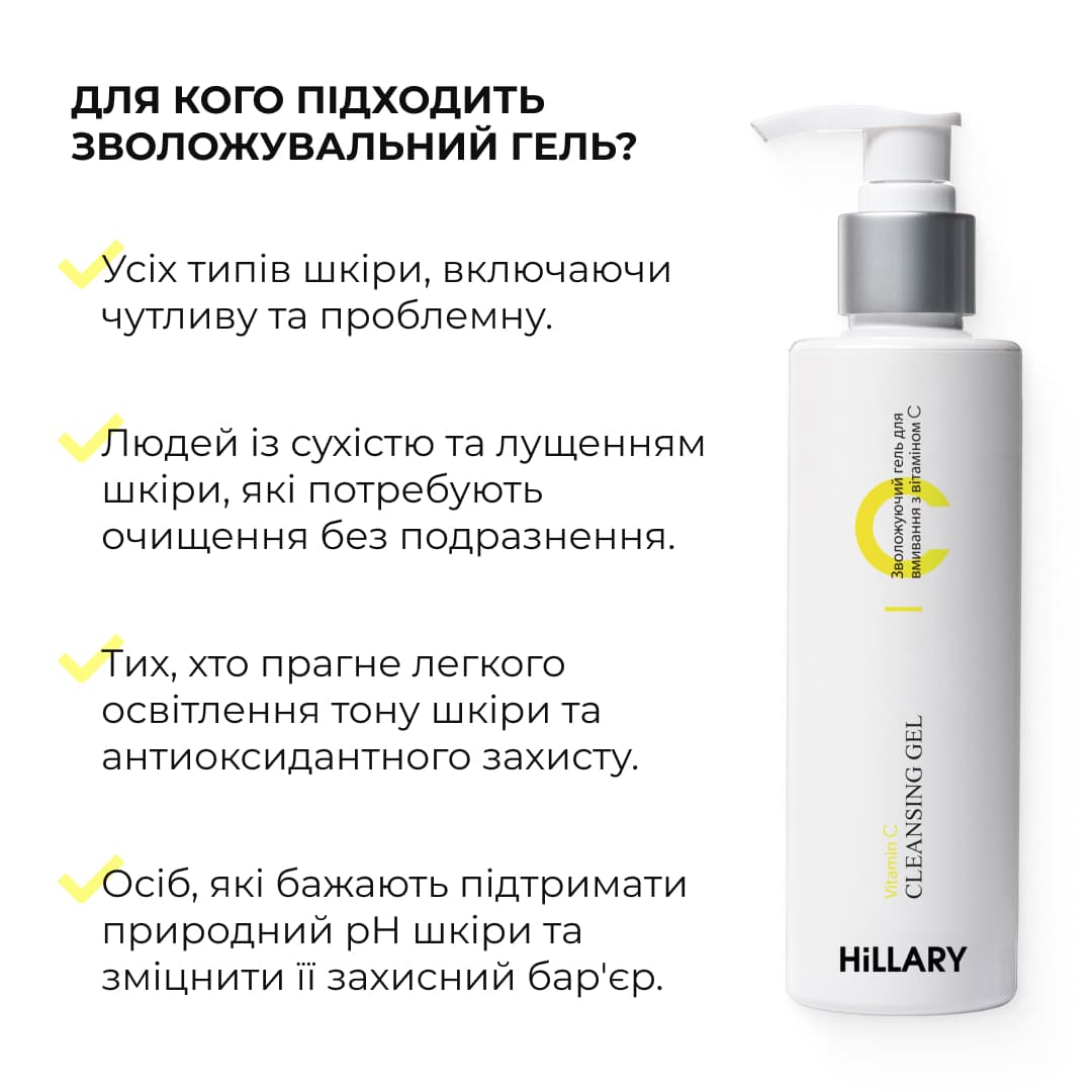 - Зволожуючий гель для вмивання з вітаміном С Hillary Vitamin С Мoisturizing Cleansing Gel, 150 мл