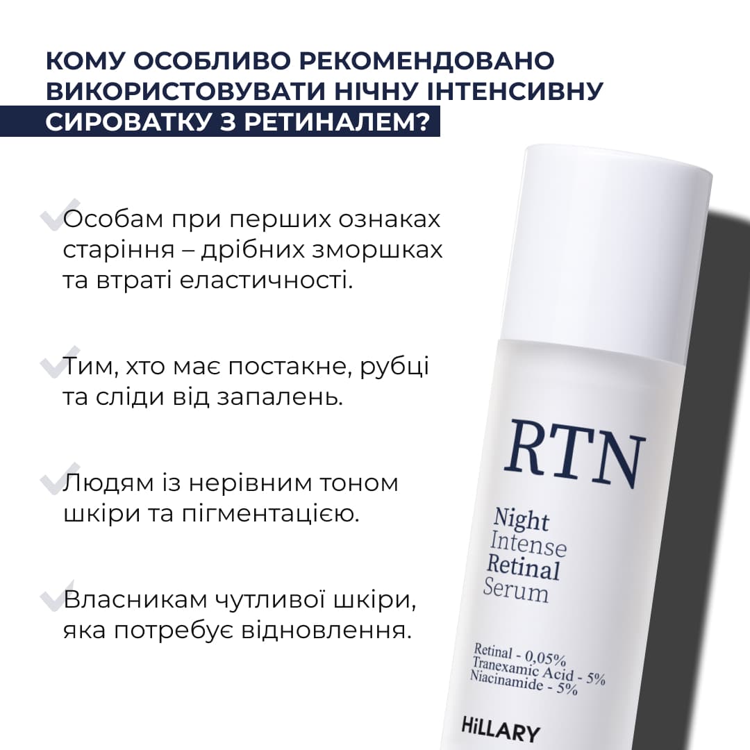 - Нічна інтенсивна сироватка з ретиналем Hillary Night Intense Retinal Serum, 30 мл