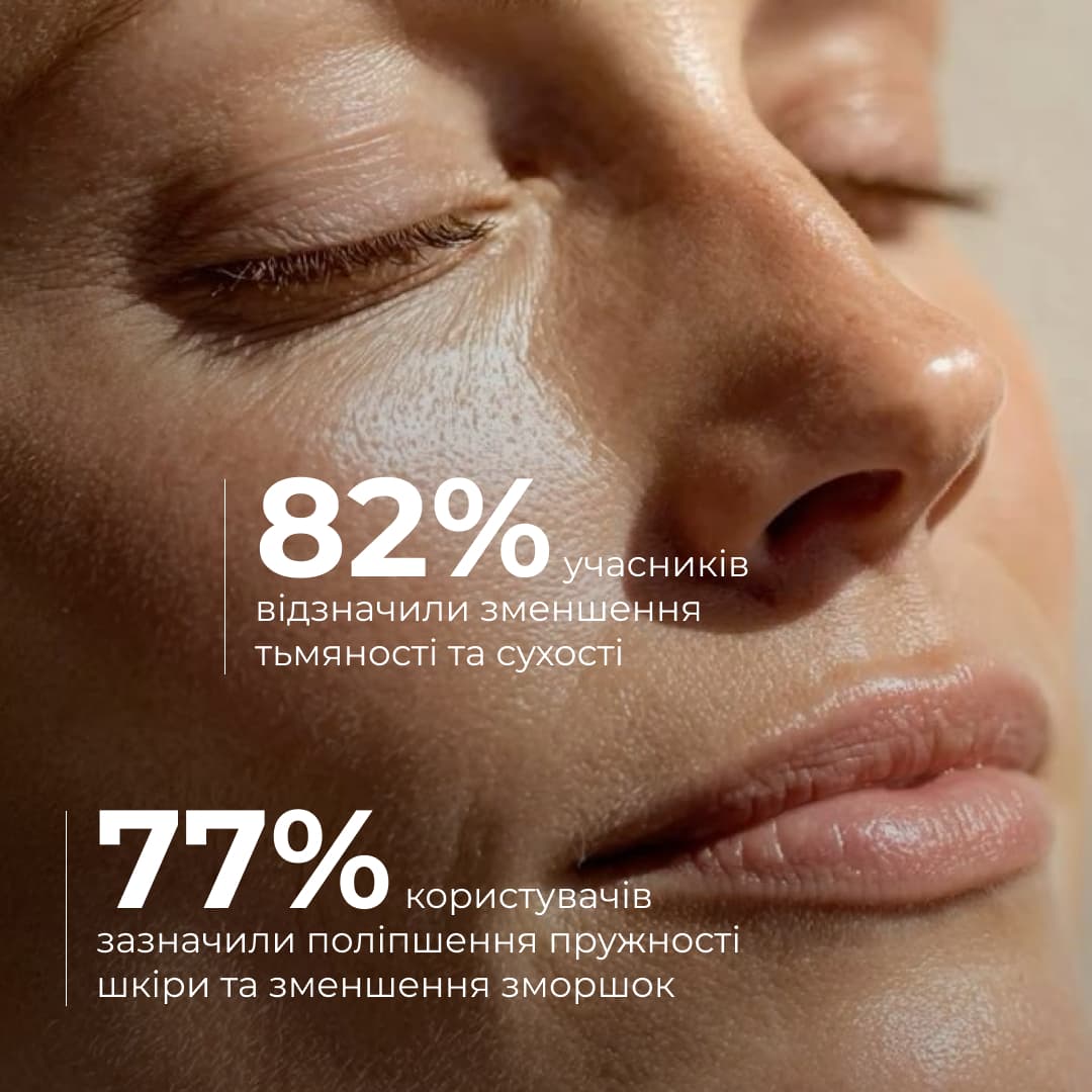 При регулярному застосуванні комплекс допомагає зменшити вираженість мімічних і вікових зморшок, вирівнює тон і мікрорельєф, повертає обличчю свіжість і відпочилий вигляд. Шкіра стає більш еластичною, гладкою та захищеною, а її бар’єр – стійкішим до стресових факторів.