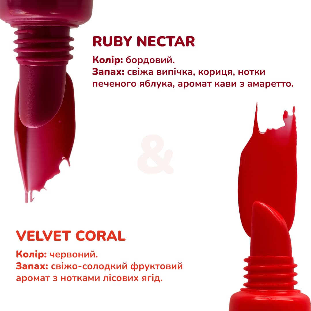Набір бальзамів-блисків для губ Velvet Coral та Ruby Nectar + іграшка-брелок