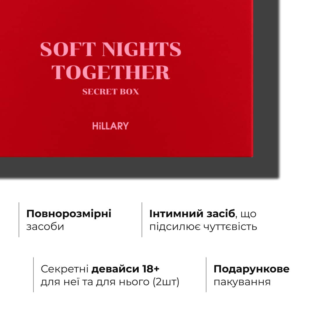 Зробіть крок до нових відчуттів та зближення. Замовляйте Hillary THE LOVERS' NIGHT SECRET BOX 18+ уже зараз і даруйте своїм стосункам яскраві, емоційно насичені моменти, які залишаться у пам'яті назавжди!