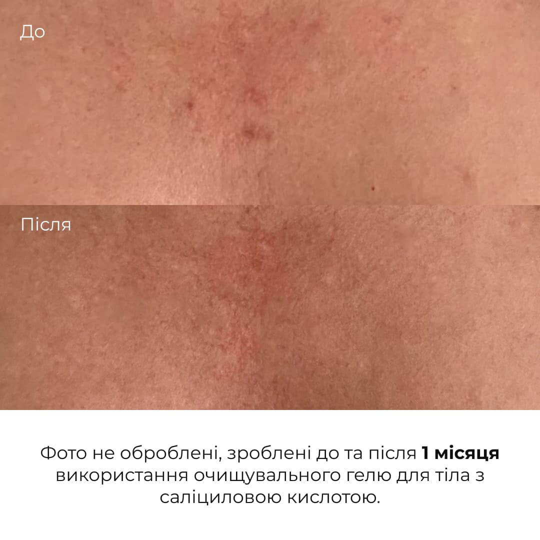 Гель для тіла з саліциловою кислотою (1,2%) – ідеальне рішення для шкіри, схильної до акне, запалень та жирного блиску. Завдяки активним компонентам, засіб ефективно очищує пори, зменшує видимість висипань і вирівнює текстуру шкіри, роблячи її гладкою та свіжою.