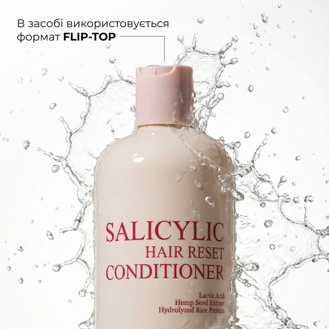 Salicylic Hair Reset Conditioner – глибоке відновлення довжини волосся з дерматологічним підходом. Завдяки комбінації заспокійливих та реструктуруючих компонентів, засіб забезпечує м’якість, блиск і еластичність навіть сухим і пошкодженим ділянкам волосся.