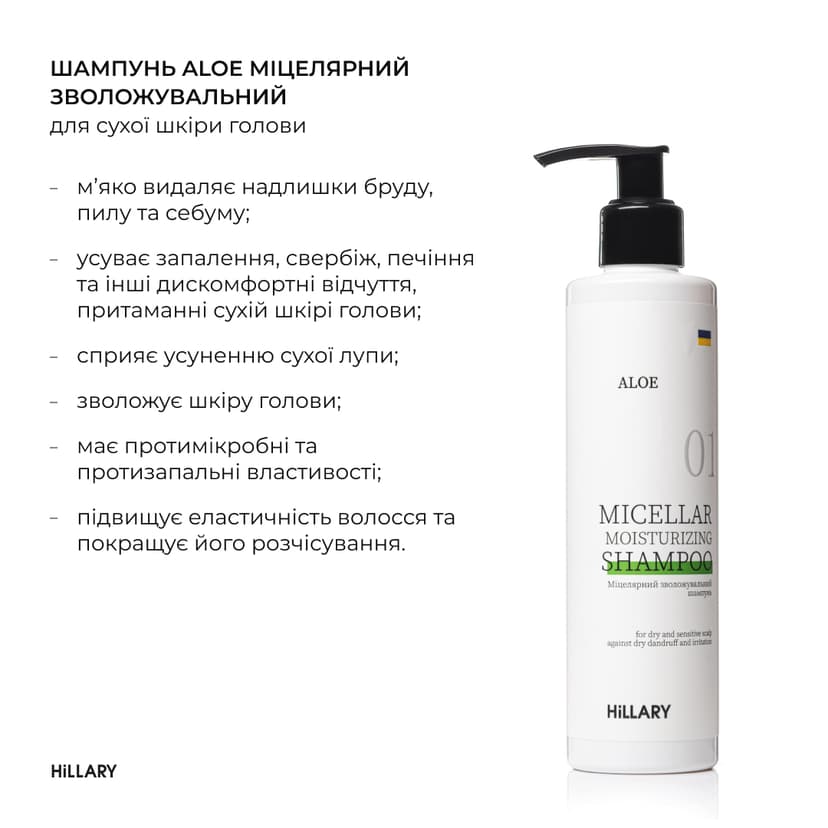 - Міцелярний зволожувальний шампунь Aloe Hillary Aloe Micellar Moisturizing Shampoo, 250 мл
