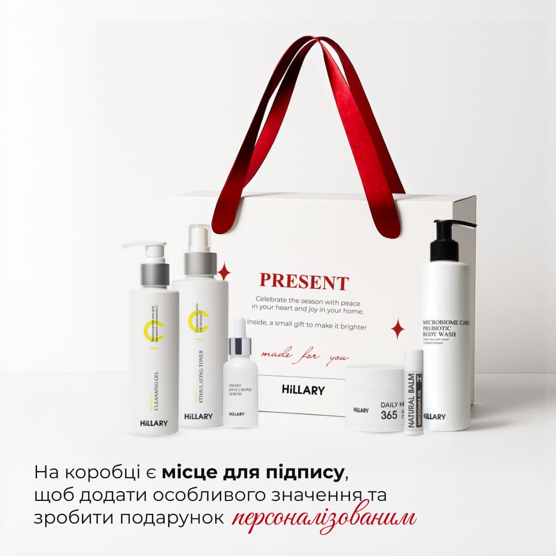 Hillary Present Classic Edition – це збалансований набір для комплексного догляду за шкірою обличчя та тіла. У ньому зібрано все необхідне, щоб забезпечити очищення, тонізацію, зволоження та живлення, зберігаючи природний баланс і здоровий вигляд шкіри.